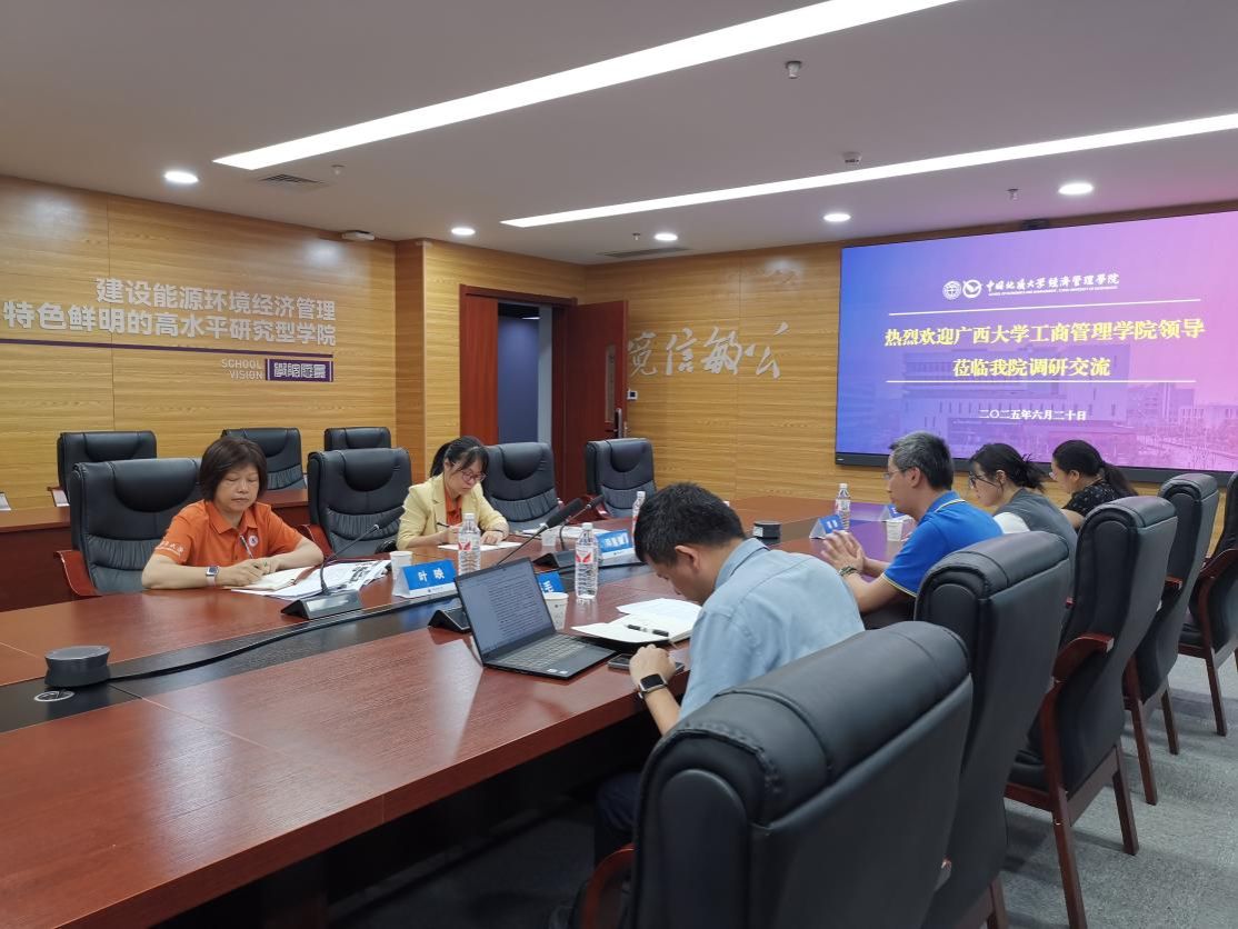 (通讯员 王简辞)6 月 20 日,广西大学工商管理学院研究生管理中心主任、MBA 教育中心主任叶映,研究生秘书邓素媛到访pg官网,就本硕博一体化培养、人才培养保障等议题展开深入交流。pg官网学术副院长池毛毛携博导代表及相关工作人员参与座谈。