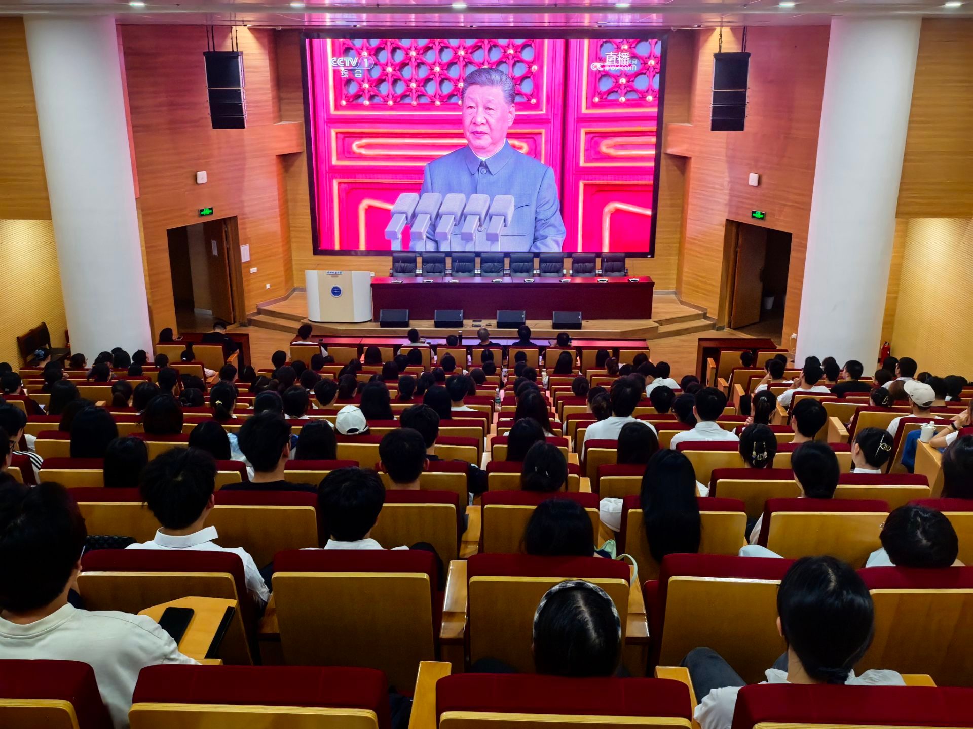 pg电子中国官方网站组织全体师生在经管楼二楼报告厅等地集中观看大会实况转播,共同聆听习近平总书记重要讲话、见证阅兵仪式庄严时刻,深刻感受伟大抗战精神在新时代的赓续传承。