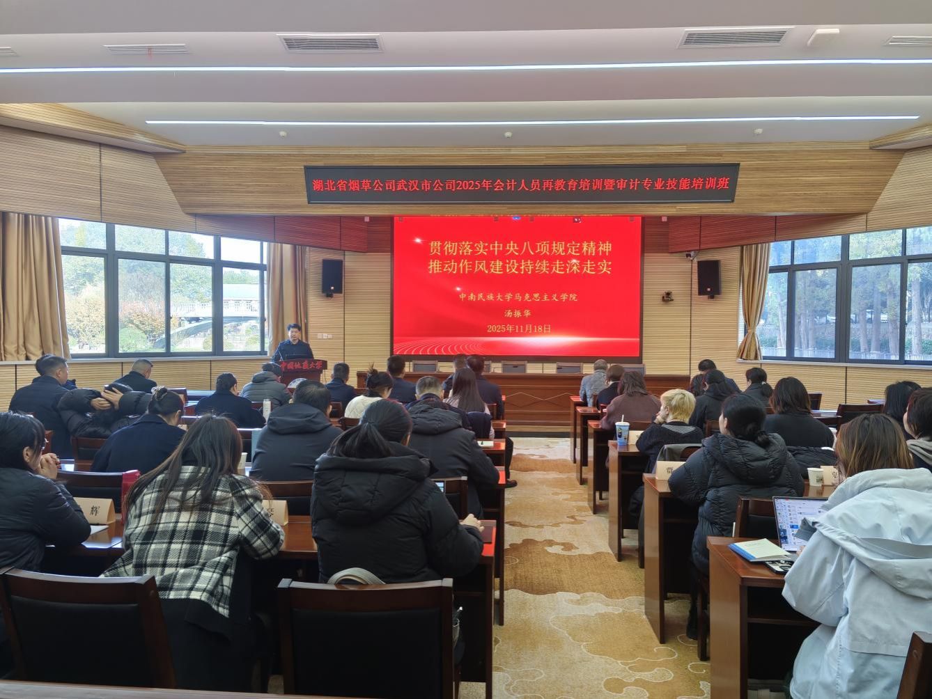 (通讯员:陈永平)2025年11月18日上午,湖北省烟草公司武汉市公司2025年会计人员再教育培训暨审计专业技能培训班开班仪式在pg电子中国官方网站(武汉)八角楼报告厅隆重举行。湖北省烟草公司武汉市公司党委委员、副经理、副局长陈劲,财务处长李华华,审计处处长邓斌;pg电子中国官方网站(武汉)pg电子中国官方网站党委书记薛保山,院长於世为等出席,湖北省烟草公司武汉市公司财务处长李华华主持本次开班仪式。