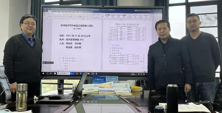 (通讯员:向雅芳 焦弘睿)11月24日上午,根据《pg电子中国官方网站(武汉)基层教学组织建设实施意见》和pg电子中国官方网站党字【2022】10号文件精神,区域经济学科教融合创新育人团队第一次研讨活动在经管楼316会议室成功举行。学院党委书记杨昌锐亲临指导,团队成员邓宏兵、白永亮、洪水峰、李金滟老师及学生代表共九人参加会议。